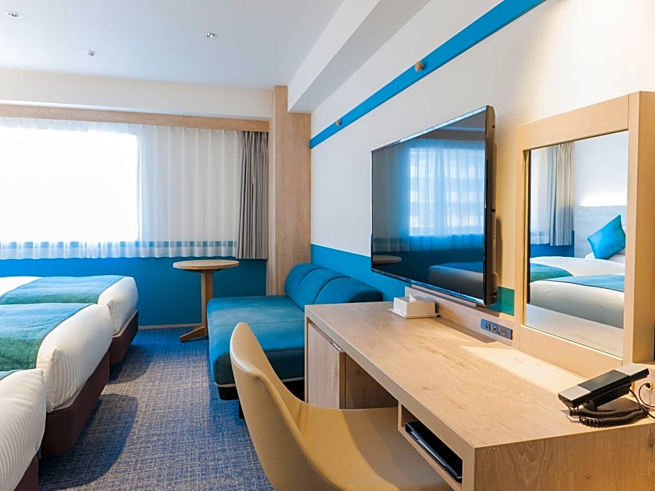 This twin room has air conditioning, electric kettle and flat-screen TV.